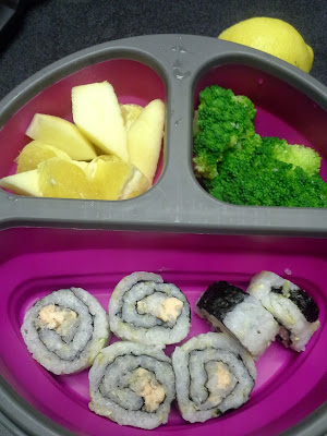 用前一天剩下的味增烤鮭魚 加點胡椒拌在飯裡 用海苔捲成壽司