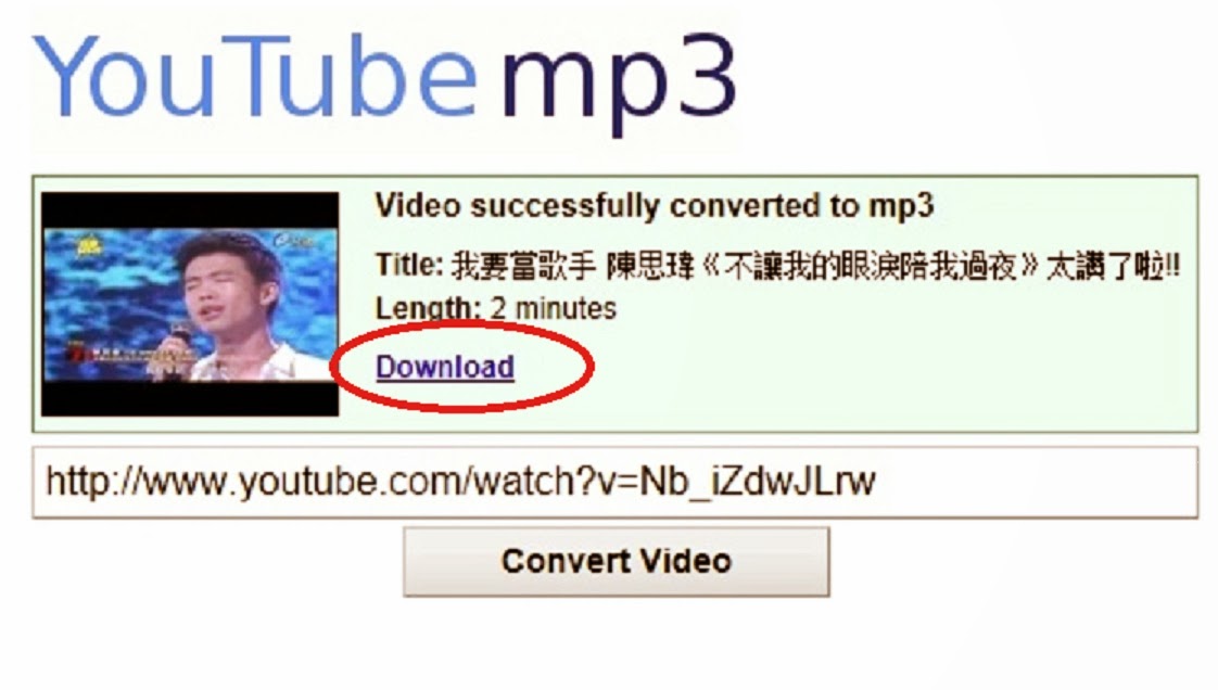 Step 3. 把剛剛youtube的網址 (http://www.youtube.com/watch?v=Nb_iZdwJLrw) 複製到藍色字寫的YouTubeMp3 下面的空格裡