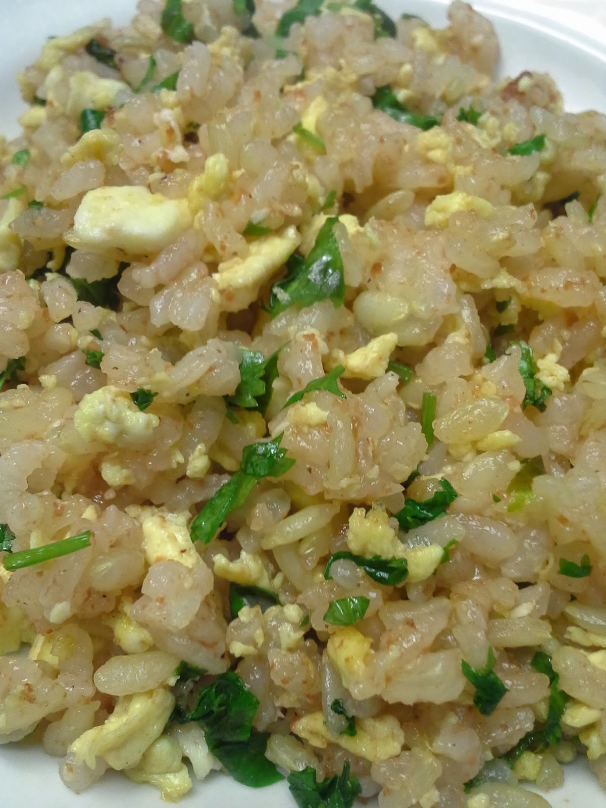 其實就像一般的炒飯, 只是我先用紅糟醬炒飯(白米混糙米)。